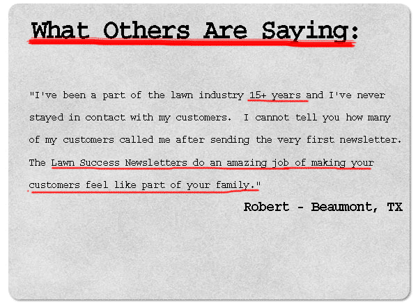 I'm not worried about you canceling though, I know once you begin using the extremely effective "LawnSuccess" newsletter that I've written for you…you'll